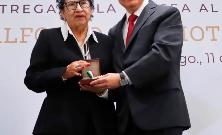 En presencia de representantes tanto de los tres poderes, órdenes de gobierno y asociaciones de abogados, el mandatario entregó la Presea al Mérito Jurídico 2025 “Alfonso Cravioto Mejorada”, a la jurista Adela Hernández Serrano, quien, con más de 50 años de experiencia, se ha distinguido por su vocación, integridad y compromiso con el derecho.