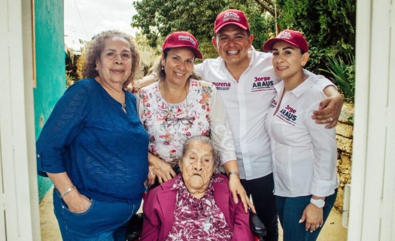 La aspirante, acompañada por Arturo Gómez Canales, candidato a diputado local por el distrito XI, continúan tocando puertas y escuchando de viva voz las solicitudes y demandas de vecinos, a quienes además invitan a adherirse al proyecto de gobierno de la Cuarta Transformación.
