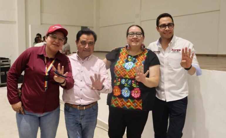 Posteriormente, en Huazalingo, Simey Olvera respaldó a Jessica Cortés, candidata a la alcaldía, en un encuentro con la población de Santa María. Las aspirantes de Morena dialogaron con los presentes e invitaron a sufragar por la Cuarta Transformación.